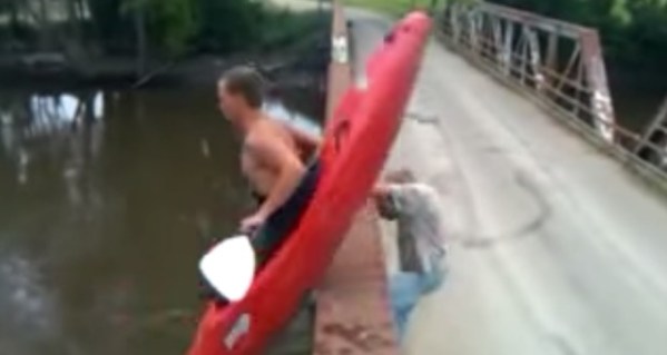 How’s the fishing? If we could all be this lucky to have friends like this. You’re rolling in with the canoe on a hot summer day and you just need a hand tying it up. He asked about what did get? Our guess is a bruised rib!