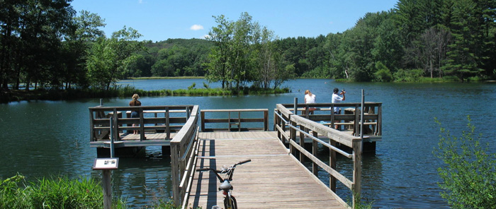 A two-hour drive north from Madison, Hartman Creek State Park lies on the Wisconsin Chain O’Lakes – 15 lakes connected to one another by the Fox River and man-made channels. This park is made up of glacial terrain and many visitors enjoy riding down what is left of the Green Bay Lobe, the last great continental ice sheet. There are 103 campsites for RVs and tents at Hartman Creek, located in both a red pine forest and an old apple orchard with many unique trees. Miles and miles of off-road biking and hiking trails are scattered throughout the grounds and Hartman Lake has a sandy beach to cool off afterwards. Hartman Creek used to ne a fish hatchery, so anglers can expect to catch a wide variety of fish in all of the nearby lakes.