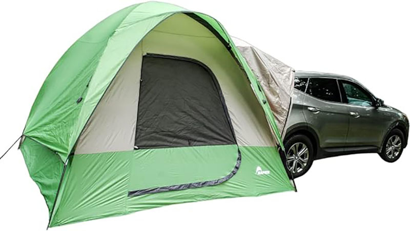 If you’re planning to travel with a large crew, the North East Harbor Universal tent is a great SUV tent with plenty of room for everyone. According to the product description, six campers can sleep in the tent, with two in the cargo area.