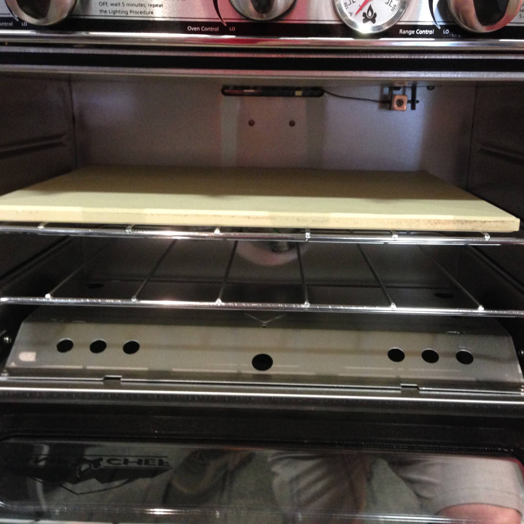 The oven has plenty of room coming with two racks big enough to hold 9×13 pans while having two burners on top. Both the oven and burners have matchless ignitions which can be really nice when you are trying to start it outdoors. Both the oven and the burners have easy temperature control dials and the oven has a built-in temperature gauge. It has a see-through glass door to check on your foods in the oven without losing heat. The range is protected by a cover which doubles as a wind-screen as well.
