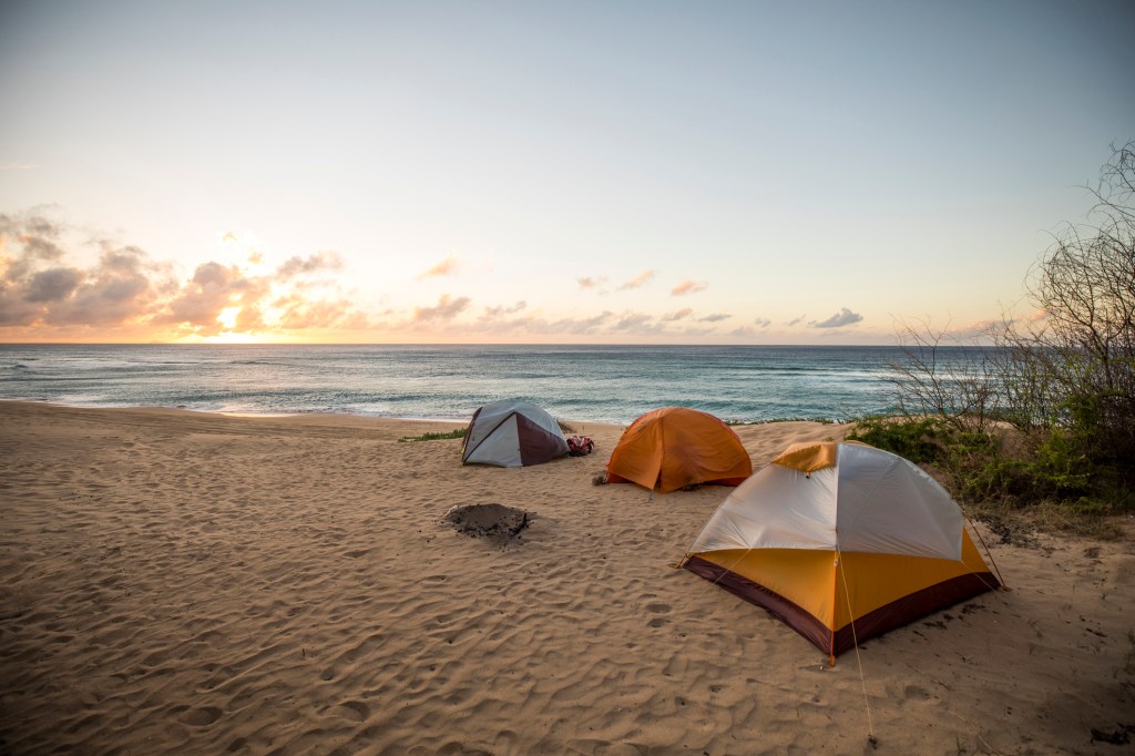 Even beaches that allow tents or other shelters during the day will likely require you to remove them before sunset each evening. Only a few beaches, mostly within state parks, allow overnight camping on beaches and may require permits to do so.