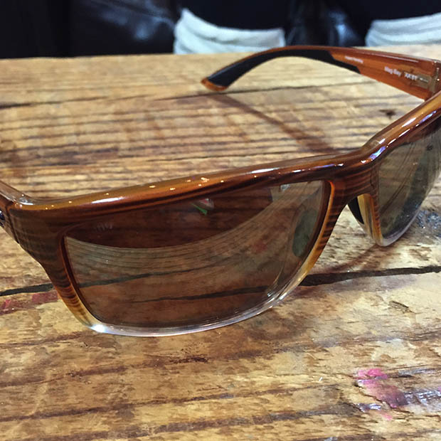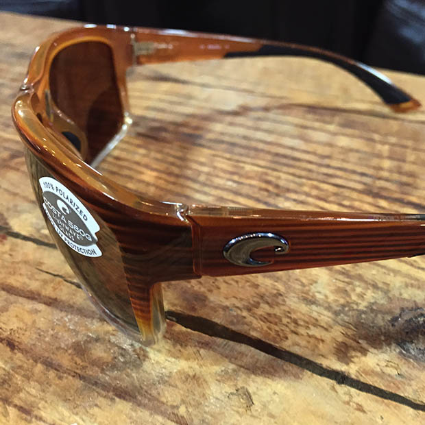 It’s a beautiful frame that incorporates an internal spring hinge so it’s always snug to your face and never uncomfortable. It incorporates Costa’s signature rubber on the inside of the temple tips so it stays glued to your face for those high outdoor things you do. It’s very lightweight and in a new, great design.