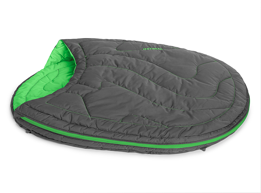 A packable, durable sleeping bag with a zippered opening allows the bag to open wide, then zip closed to retain body heat. Features lightweight synthetic insulation and compresses into an included stuff sack. Integrated pad sleeve accommodates the Ruffwear Highlands Padâ„¢ for additional insulation in extreme cold. Polyester fabric shell provides a comfortable sleeping surface and cleans easily.