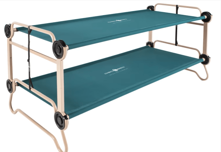 If two people are sleeping in a pop-up fishing shelter, a bunk bed cot is the only way to go. The Disc-O Bed XL offers a great setup. It allows two people to get a good night’s sleep and left enough room for angling in front of the bunks.
