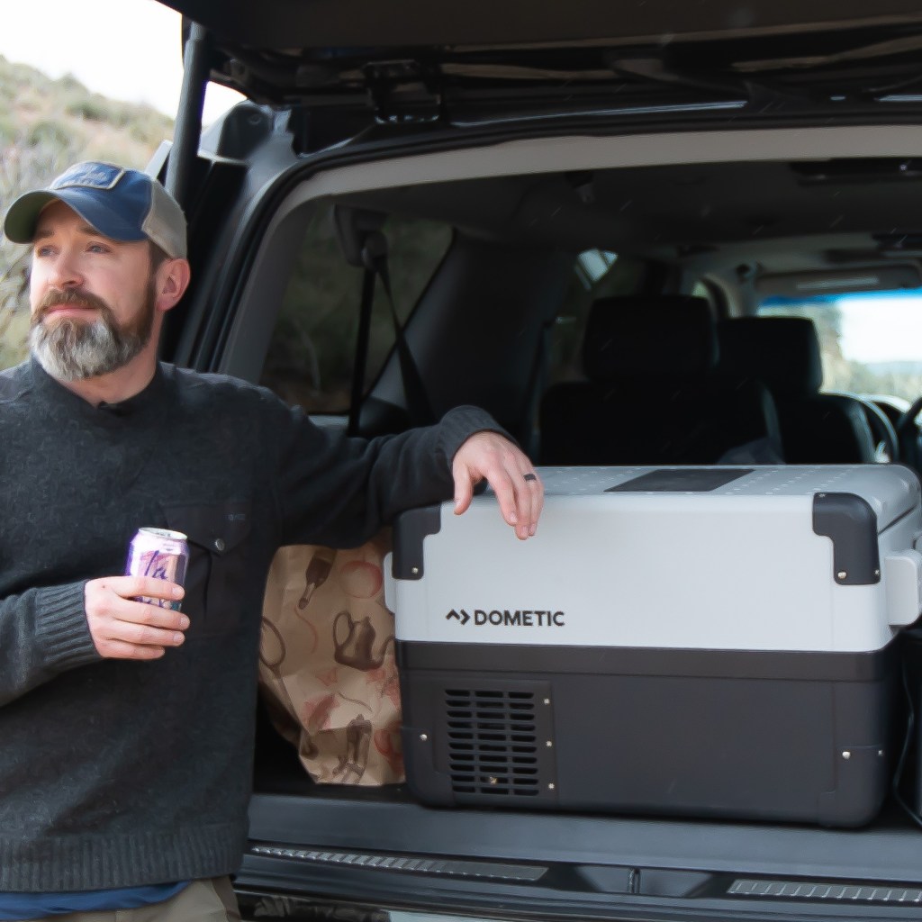 Dometic CFX 35W Electric Cooler can be powered with AC, DC, or solar, and can get down to -7F if they wanted to use it as a freezer. It holds 47 cans and has an ultra-quiet compressor that makes for relaxing travel. We’ve used one on several trips, and really liked the battery protection system, which prevents it from completely draining your battery if you’re using it while you’re parked. Check out our review