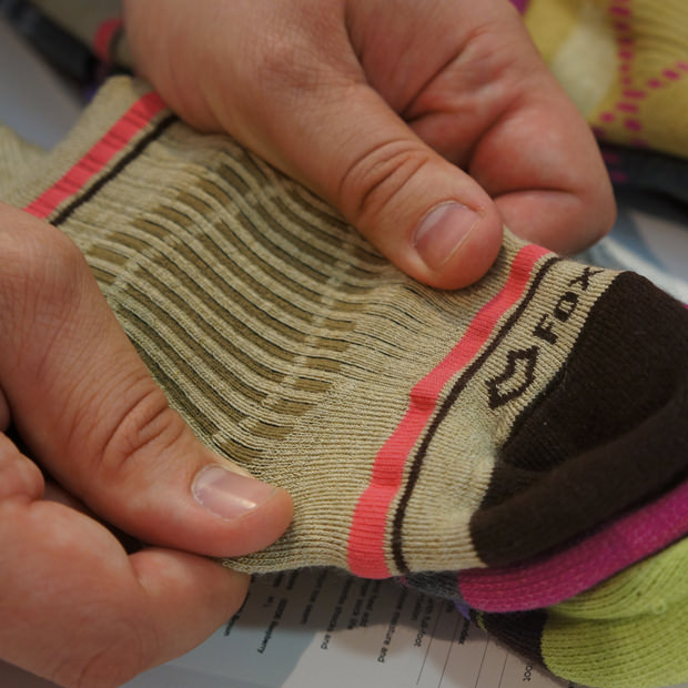 The new Fox River Peak Hiking Series will be available October 2014 in a light weight and medium weight. This premium sock is made of a merino wool and tencel blend (eucalyptus material) that will spread moisture out and then evaporate. Most hiking socks come with a graduated compression from the cuff to the heel, Fox River took that a step further with their volume metric compression from the cuff to the heel and heel to toe to promote blood flow through out the whole foot.