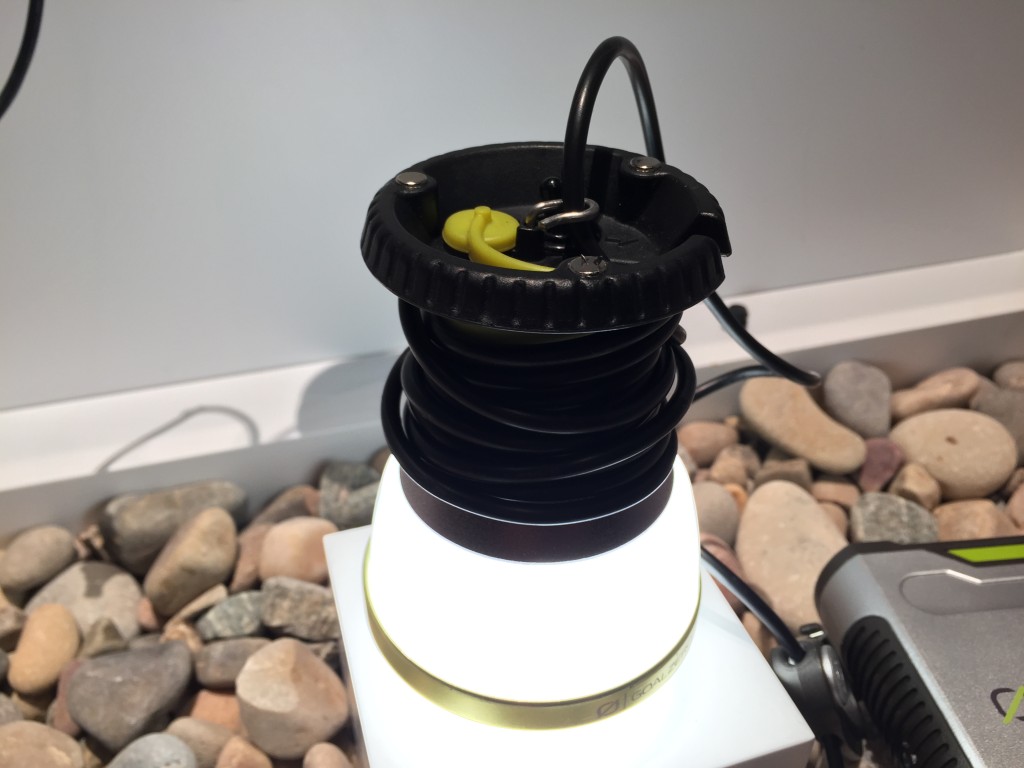 Overview: This is an awesome lantern to have on any camping outdoor adventure, maybe even if you’re car camping or just want great light around the house. It works from the Goal Zero Yeti and Sherpa rechargers. There’s a handy on/off switch on top, a high setting and low setting so depending on your power drive. If you want long lasting light stick, set it on low. On high you’re looking at about 350 lumens,so this thing is really meant to brighten up an area.
