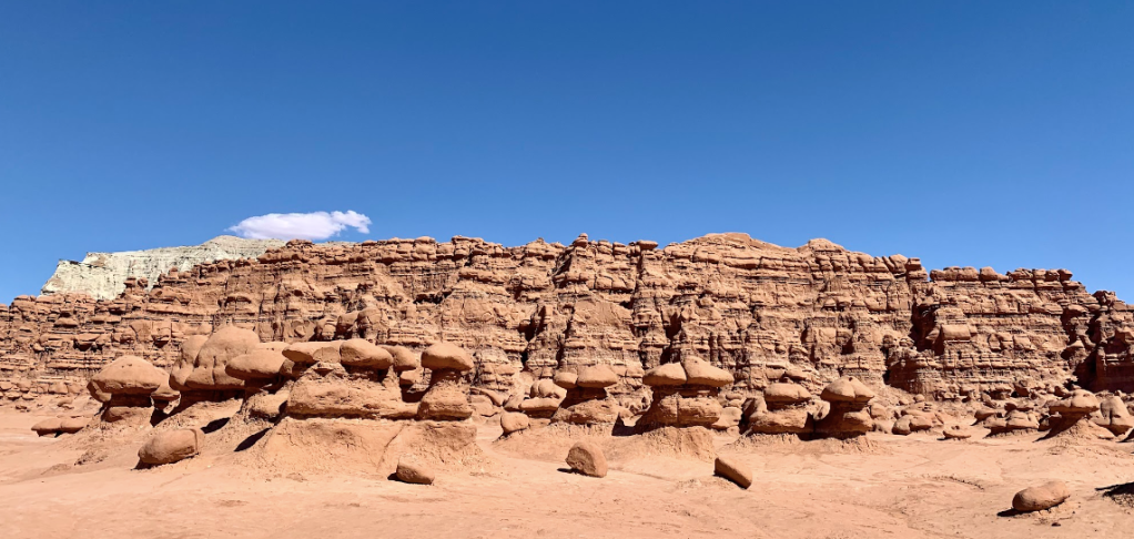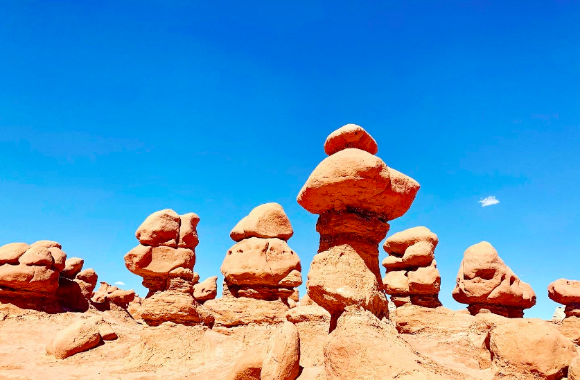 The bright red and orange hues. The rock formation “goblins.” This park is everything you’d imagine a hike on Mars to look like. What’s interesting about it is rather than mountain trails that ascend, in Goblin Valley you hike down. Into the landscape. The set-up allows you to explore the maze of goblin-like formations. It also goes opposite most parks that require hikers to stay on trails. Most do this for safety reasons and to prevent damage to vegetation, soil, but not here. Goblin Valley is unique as it allows off-trail hiking. It makes for an adventure weaving through the rock formations and navigating this maze of an area.