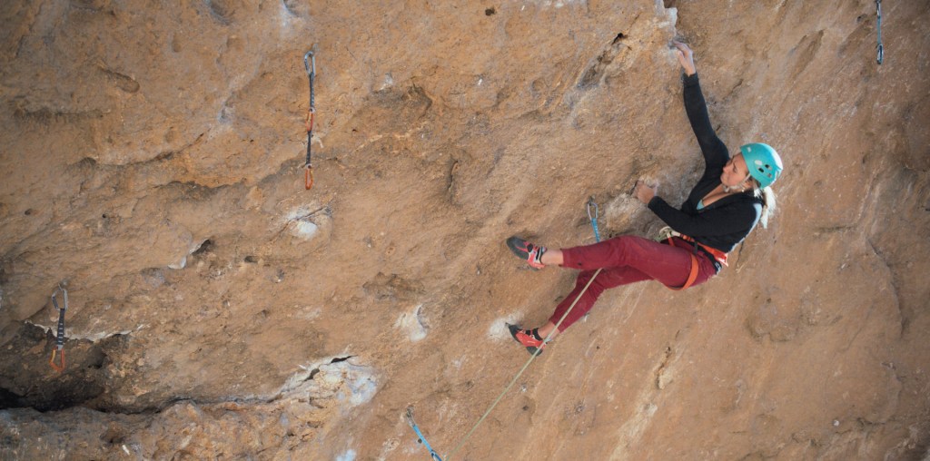 The main challenge, Patiasso al Pallaso, is 70 feet long. The bottom is polished rock that’s harder to grip. There are a lot of different holds so it’s easy to get lost. The crux is a strenuous move that starts in a crack in a cave, then the climbers will be completely horizontal before attempting a brutal 10 move sequence that requires insane upper body strength.