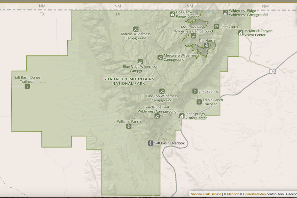 Guadalupe Mountains National Park is one of the least visited national parks in the continental U.S. For instance, Guadalupe sees fewer than half the number of visitors to Texas’s other national park, Big Bend. Guadalupe sits east of El Paso, TX, and just south of the New Mexico border. Despite the remote destination, it’s a short drive to Carlsbad Caverns and White Sands, at least by national park standards.