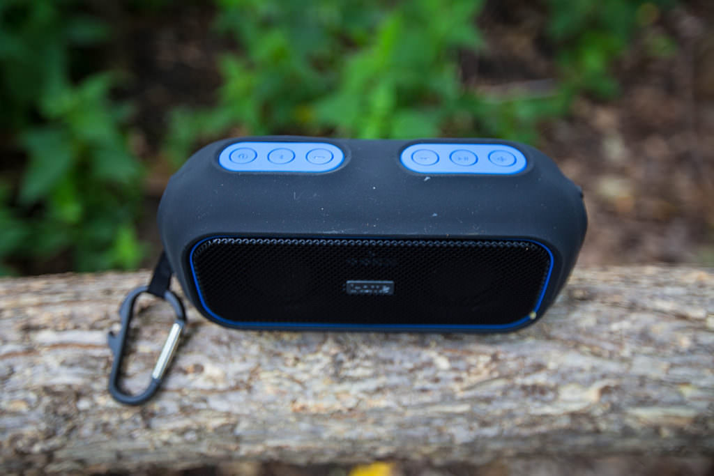 The iHome iBT9 is a directional speaker, which has a flattering mid-tone range. It includes a battery charging circuit which is incredibly useful when you are camping or hiking in a remote location. It can also function as a speakerphone which allows you to take phone calls via the built-in microphone, and we found this feature really fun when we were taking calls with the family at the campsite.