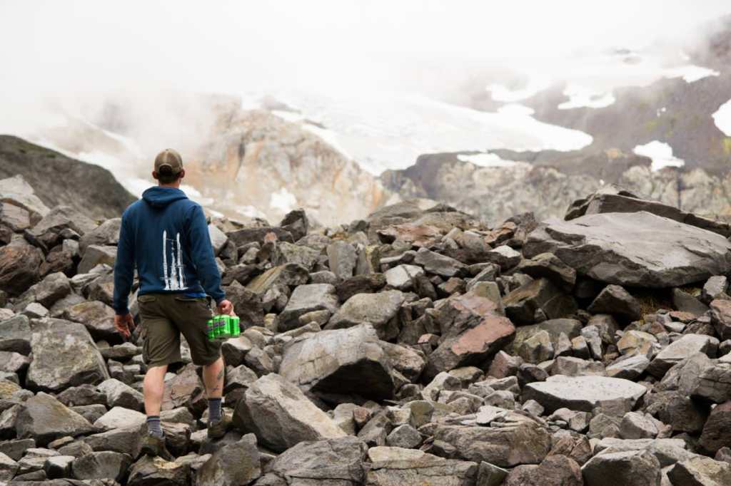This ridge is on the North side of our local volcano, Mount Baker (10,781’). We didn’t arrive to the trailhead (4680’) until about 6pm but since it was the middle of summer we didn’t worry too much as we still had a good 3 hours of daylight to complete our hike into camp. The moment we opened the car doors at the trailhead we were completely enveloped in mosquitoes and black flies, and they were out for blood. Now, I have spent time in places that are notorious for man-eating insects, such as the interior of Alaska and the like, so believe me when I say these bugs were bad, they were bad. The swarms of insects were like that of sawdust ejecting from a power saw. They would buzz into your eyes, ears, nose, hair and on any other exposed piece if skin trying to suck the life out of you. And we hadn’t even left the parking lot yet! We quickly donned our packs, completely bathed in insect repellant (the good stuff too, 98% Deet) and hit the trail on our way to my favorite campsite, about 4 miles up the ridge.