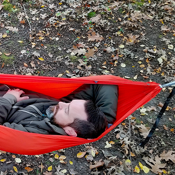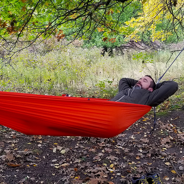 The Kammock Wallaby is that tiny, portable hammock you’ve been looking for. This little 10 oz hammock is made from 40D diamond ripstop fabric and holds 400 lbs. The other thing I like about the diamond ripstop is that it’s not stretchy which means it will keep its shape for a long time. It’s comfortable. Like, really comfortable. I can’t really put my finger on why. I just know that I didn’t want to get out of it.