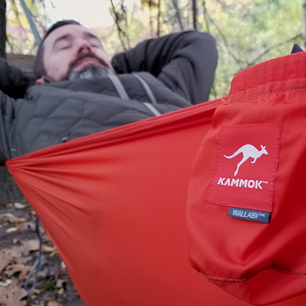 Another cool move on Kammock’s part was to put loops along both sides of the Wallaby for attaching water bottles, a stuff sack with a book, or whatever you want. It’s a cool feature because you know that when you climb into a hammock, you want to stay put for awhile. Lastly, I’ll add that the model they sent me included the Python Straps, which reduce setup time to about 30 seconds.