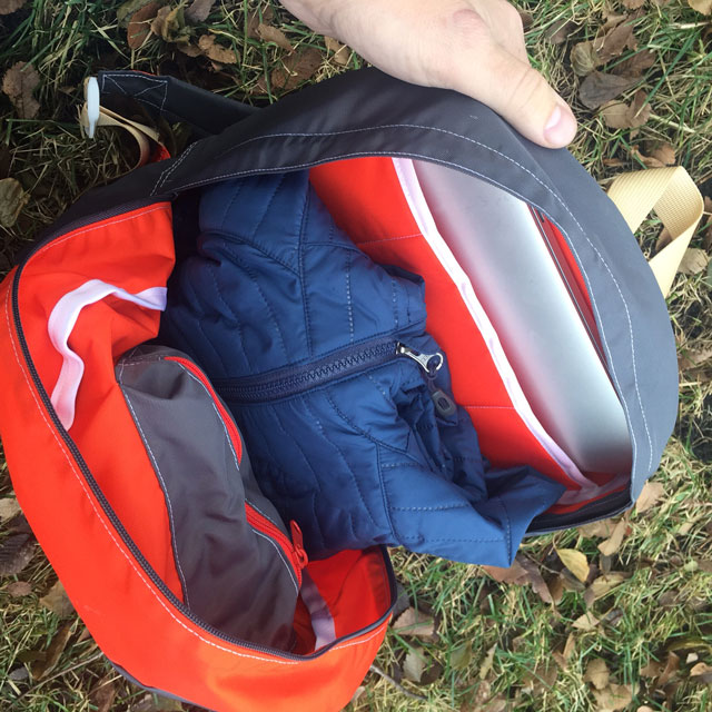 We’ve been hiking around with the Classic style Big Pocket Backpack in the orange/charcoal color way. Just like the name describes, its got a big pocket, supported by an additional 2 smaller pockets for the accessories. Did we mention that this classic pack also boasts an internal padded laptop pouch and interior zip pocket? You’ll be cruising around town…and the trails in style. It’s icing on the cake that this bag is made in the USA.
