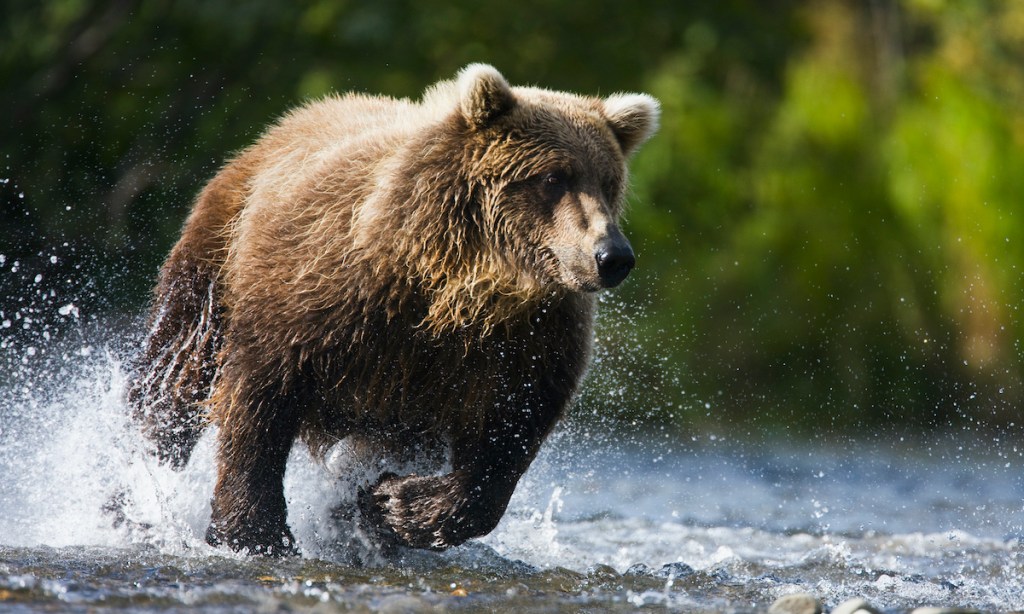 If you encounter a bear while hiking, give the bear plenty of space. Don’t run, scream, drop your pack or get between an adult bear and its young. Like dogs, bears may chase people or animals that flee from them. Don’t try to turn and run to escape a bear. Instead, wave your arms slowly, speak in a calm voice and back away to seek an alternate route. Never approach the bear—no matter how good the selfie might be. (Besides, bears are plenty capable of taking selfies by themselves, anyway.)