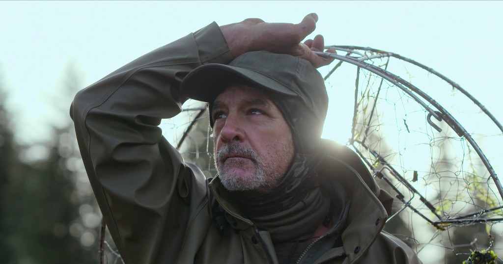 As the temperatures drop into the 30s, freezing windy drizzle starts. A voiceover narrator mentions that the contestants don’t know that this part of the Alaskan jungle gets 60 inches of rainfall per year and it’s possible that it can pour nonstop for days on end. “Even most callous person is gonna struggle,” Justin predicts.