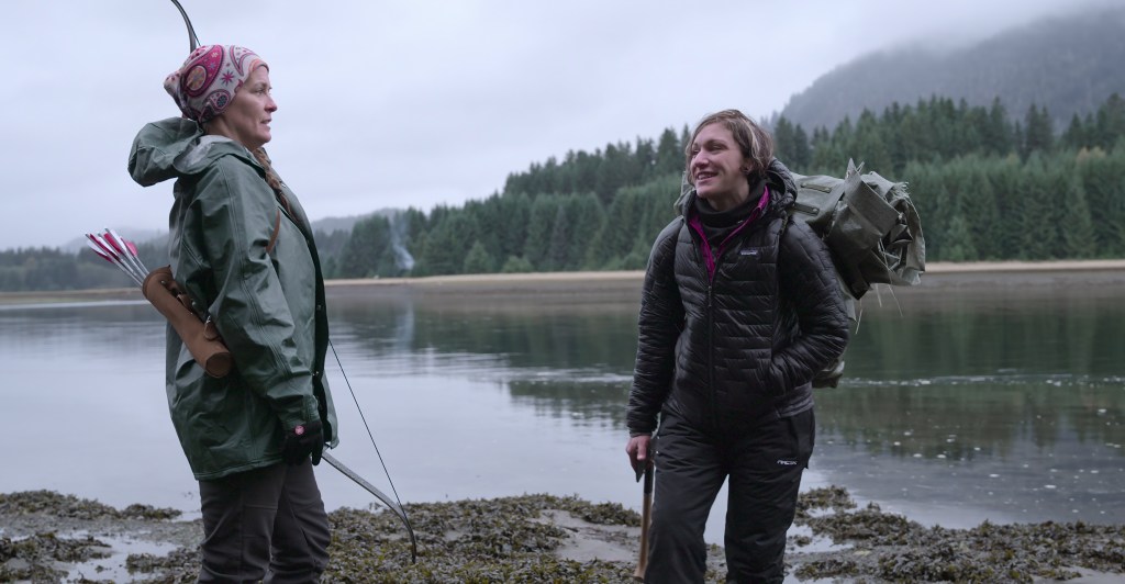 When the cast of characters first meet each other on a flood plain, a bag of basic supplies — a hatchet knife, tarp, wool blanket, flashlight, bow, medical kit, flint, two tin cups, a map and bear spray —is parachuted down from a helicopter.