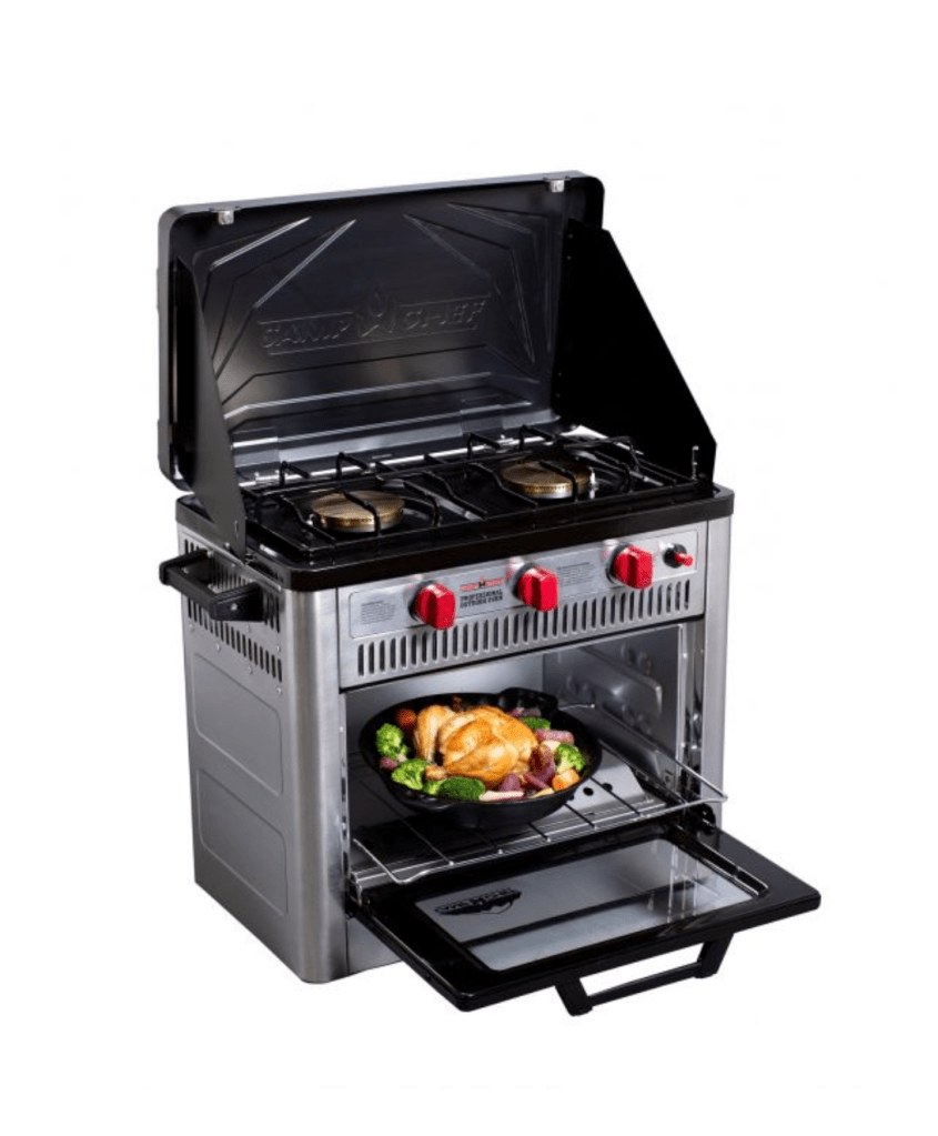 The Camp Chef Professional Outdoor Oven means that there is literally nothing you can’t cook at the campsite! A 400-degree oven and two 9,000 BTU burners on the top will turn your campsite into a full-blown kitchen.