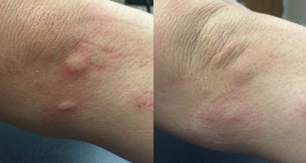 Our camera man swells up pretty good from mosquito bites, so we decided to test it on him. All you do is press it over the bite, create the suction, and wait 30 seconds. We were surprised to see that it both reduced the swelling and even better –Â the itching went away.