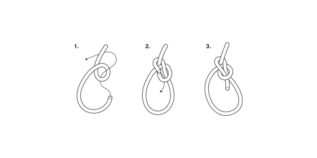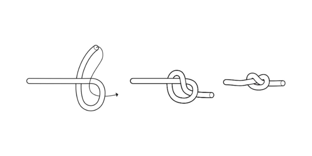 A clove hitch is also an easy knot to tie and is best used to secure a line around a cylindrical object. It can be used to attach a rope to a pole or a carabiner.