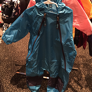 Overview: This is the Tuffo Muddy Buddy. It’s a one piece rain suit designed specifically for kids. It’s 100% polyester with a waterproof protein on the inside. All the seams are taped, and has waterproof zippers. The suit comes in four colors, yellow, pink, blue and red. And five sizes, it starts at 12 months, 18 months, size 2, size 3, size 4 and size 5.