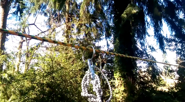 Some campgrounds require dogs to be leashed. In a new environment like that there is even more to explore than at home, so they can be running every which way at once. That’s why we like the dog zip line that Reddit user Vertigoelation made with bungee cord. It’s pretty straight forward. You just tie a rope between two trees and then attach 1/4″ bungee cord to the rope with rings. A ratchet-style strap would allow you to get the rope even tighter, to allow for easier movement of the rings.