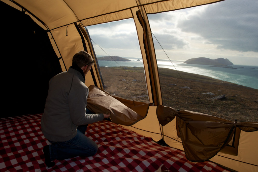 Derek: About 2011. I was in a tent, and woke during the night because of the cold. After donning a sweatshirt and sweatpants I went back to sleep……until I woke again at sunrise – roasting! The tent was like a Sauna. This had happened to me a lot and became a real pet hate of mine, along with the noise that always came straight into my tents from noisy campsites. I worked in the insulation industry so I wondered why we can’t insulate a tent? We insulate everything else… But it wasn’t until early last year that we began drawing and developing prototypes.